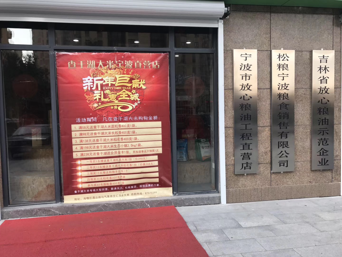 松粮(宁波)粮食销售有限公司成立于2017年9月,地处浙江省宁波市海曙区通达路与气象路交汇771号,现有员工人数5人。公司以“查干湖大米直营店”店面形式对外经营,实施一对一销售合作模式,2017年9月开始门店装修等事宜,面积195平米,2018年在宁波全市开花结果,服务于企事业团采及市区福利采购事宜,获得消费者一致好评,积极参加各类大型推介展会,不仅让广大消费者了解查干湖大米的高端品质及鲜香稻家的独家特点,还接连斩获浙江省“优质门店”等荣誉,“查干湖大米”是真正做到从田间到餐桌无缝衔接的高端品牌。2019年“查干湖大米直营店”更是被浙江省评为放心粮油等荣誉称号,截止2019年底年销售大米及杂粮杂豆200多万元。