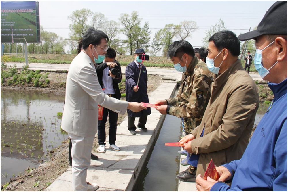 松粮集团宝蒙权董事长为松粮水稻所技术人员颁奖