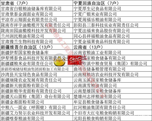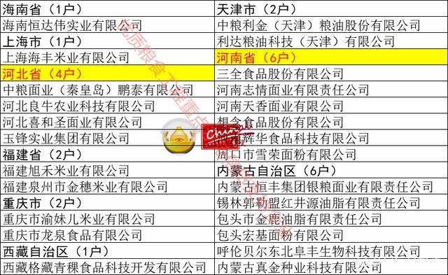 国家优质粮重点支持企业名单公布 产粮大省河南河北仅10家入围