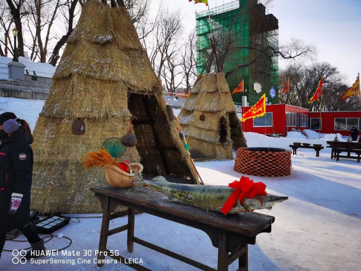 2021年哈尔滨冰雪嘉年华,“查干湖大米爱心粥屋”布展进行时……