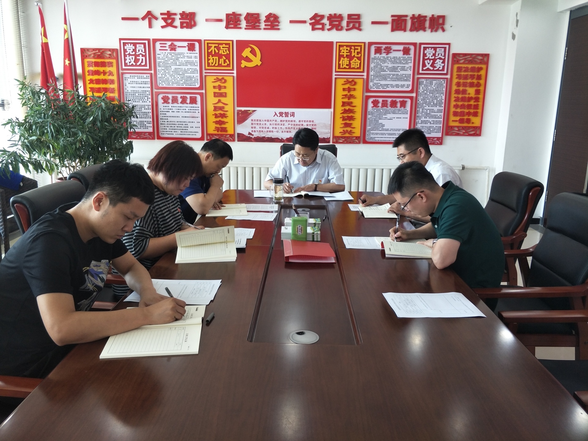(三)组织全体党员重温入党誓词。宝蒙权书记带领全体党员面对党旗庄严宣誓,重温入党誓词。提醒党员不忘初心,牢记使命,增强党性意识,以更加饱满的热情发挥共产党员的先锋模范作用,为松粮集团创造更大效益。
