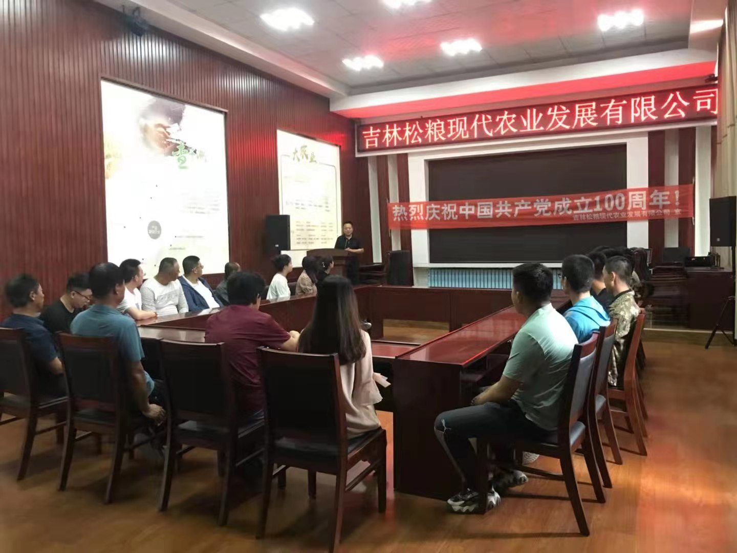 为纪念中国共产党建党100周年,松原粮食集团党支部书记、董事长宝蒙权同志组织集团干部职工开展庆祝活动。