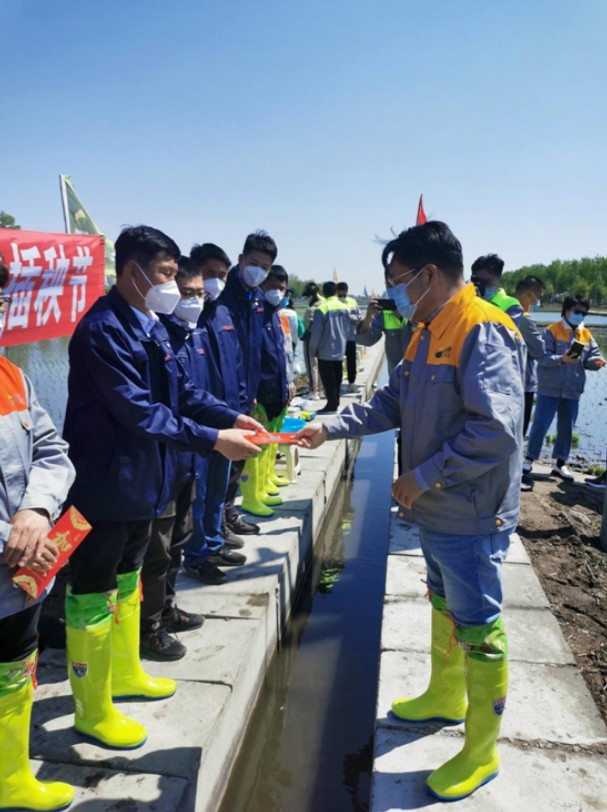 松粮集团马文炳董事长为插秧能手颁发奖励