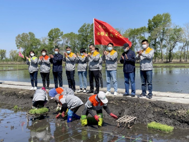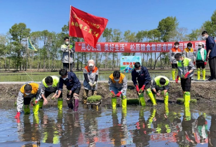 稻畦插遍青如染,满望今年倍丰收。5月的松嫩平原,和风拂面,万木竞秀,黑土地上的水稻秧苗翠绿壮实、整齐划一。5月15日,松粮集团在做好疫情防控工作的同时,科学组织春耕生产,第九届查干湖大米插秧节在“中国北方粳稻种子硅谷实验基地”开幕。
